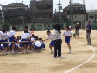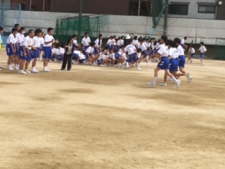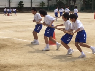 「走れ〜!」「行け〜!」「頑張れ〜」と大きな声が響きます。男子も女子も一緒になって1年生は頑張っています。