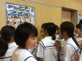 6時間目に体育館に集まって、写真屋さんが撮ってくれた写真を見ています。
