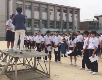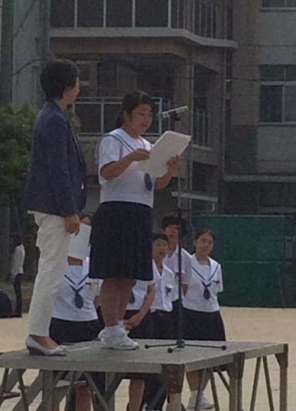 美化委員会の取組で、先週清掃状況を点検し、美しく清掃がされていた学級に表彰状が渡されました。