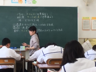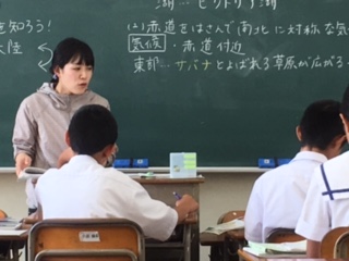 5時間目の社会の授業です。アフリカ州の自然環境を学びました。「日本にジャングルはありますか」「砂漠で人間はどのように暮らしているんですか」「アフリカ大陸はガラスの靴見たい」いろいろな疑問が湧いてくる生徒です。