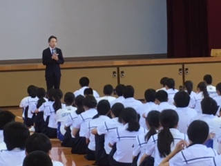 好文学園女子、興国、香ケ丘リベルテ、住吉、今宮工科、港南造形、住吉商業高校から、特色ある取り組みの紹介を受けました。みんな真剣に聞いていましたね。修学旅行に海外に行く話し、色んなコースがあること、学んだことを社会で実践できること、進学や就職先の話など、ワクワクする話しでした。まだ、将来自分がしたいことが、決まっていない人も多いと思いますが、少しずつでも探していきましょう。6時間目は高校の授業を体験させていただきます。楽しみですね。