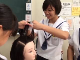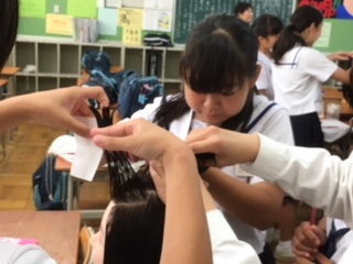 なかなかの腕前に先生も、補助していただいた学生さんも驚いていました。将来カリスマ美容師になる人も出てきそうです。