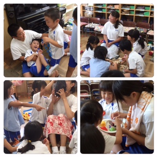 今日も部屋に入るなり、子供たちとのふれあいがスタートしました。