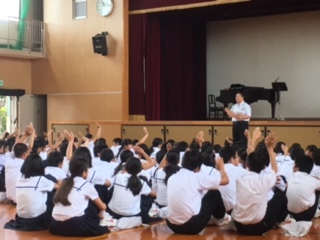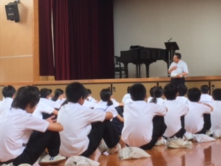 夏休みあけに元気でみんなが再開できるように、警察のお世話にならないようにしてもらうための大事なお話でした。とっても便利な道具も使い方を間違えると人を傷つけたり、自分が傷ついたりすることがいっぱいあることをスマホの具体的な例をあげてお話いただきました。そして、自分や人を助けるために使いましょうと呼びかけていただきました。