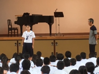 朗読を聞いて、1年生の代表の生徒が「こうして話をしている私も泣きそうになっています。茜さんが別れを決意したからステラも別れを決意できたのだと思います。お互いが幸せになったら、悲しみも薄らいでくるかもしれません。茜さんにはステラを一生忘れて欲しくありません」と発表してくれました。みんなの心が揺さぶられた朗読ヒーリングをしていただき、本当にありがとうございました。