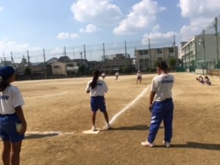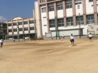1年生にボールの連携プレイの仕方を2年生が的確に教えてくれています。教えることは最大の学びです。顧問の先生も真っ黒になってノックしてくださっています。