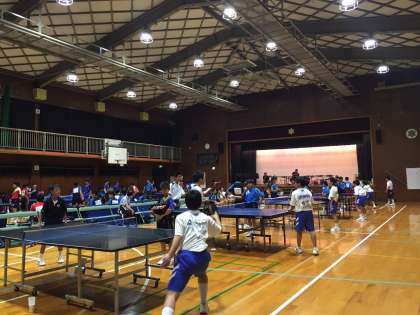 開会式では、役員の先生から「みんなも気になっていると思うけど、オリンピックの卓球男子団体は第一試合、丹羽選手がおとし、第二試合、水谷選手が取ったところです!みんなも心の中で応援しながら、今日は自分達の卓球を頑張りましょう!」とオリンピックの速報とともに激励の言葉をいただきました。
