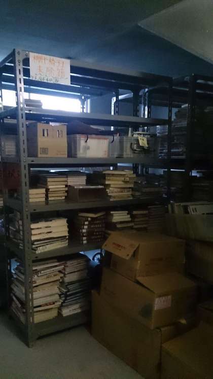 (写真は沢山の本が眠る倉庫と「ゆずります」会ポスターの1枚。