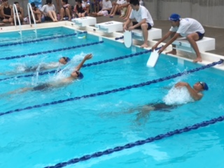 背泳はまっすぐ泳げなくてハラハラすることもありましたが、頑張りました。