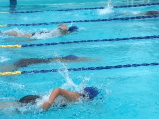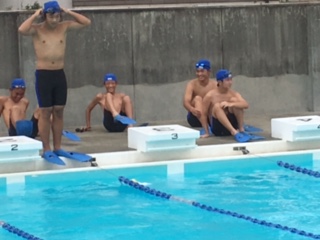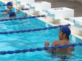 両足にフィンをつけての競技です。
