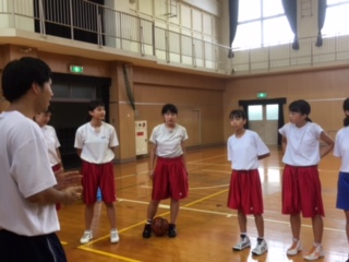 朝練も頑張る女子バスケット部です。玉城先生の指導のもと、力をメキメキあげてきました。土曜日午後1時から三国中学校で阪南中学校と対戦します。
