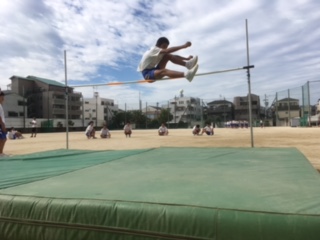 3年生は「はさみ跳び」「背面跳び」「ベリーロール」と自分の得意とする跳び方チャレンジしています。