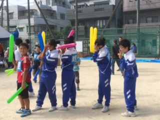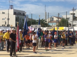 今日は暑ぐらいの秋晴れです。西成区民がたくさん集まって、スポーツで楽しく交流します。本校のグランドが会場ですが、本当に人で溢れています。