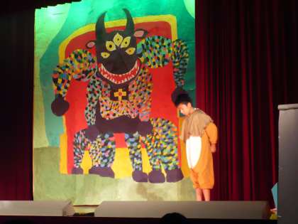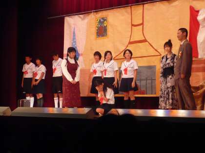 全学年が取り組んだ劇のオーディションで選ばれた4クラスが当日発表しました。