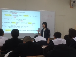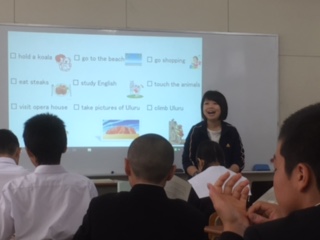 オーストラリアを訪れるとしたら何がしたいですか?から始まり、夏に海外研修に行った写真を見せてもらって、みんなもオーストラリアに行った気分になりましたね。10個の進出単語もペアで問題を出し合って覚えました。パーフェクトです。
