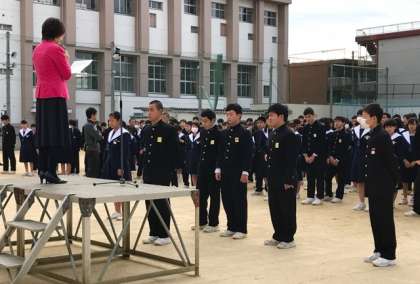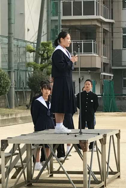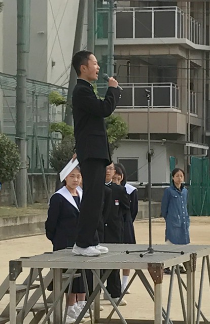最後に生徒会長から大阪マラソンクリーンアップ大作戦に参加してくれた生徒へのお礼と、次にはもっとたくさんの人が参加してくれるとうれしいですと伝えてくれました。自信が感じられる生徒会長です。