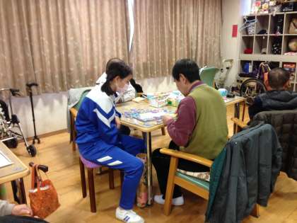 デイサービスセンターめぐみさんでお世話になりました。ふたりは、パズルの相手をしているところでした。この日、ふたりでスタンツをやり、非常に盛り上がったそうです。とても楽しかったようです。ありがとうございました。