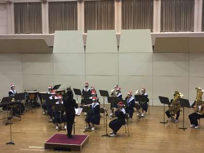今日はみんなでサンタ帽をかぶり、「クリスマスキャロルメドレー」バッハの「主よ人の望みの喜びよ」「ディズニーメドレー」を演奏しました!最後には、西成高校、玉出中学校、今宮中学校、天下茶屋中学校、梅南中学校と合同で「ふるさと」を演奏し、大きな拍手を頂きました!