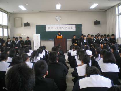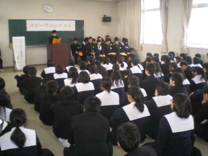 国語科で取り組んできた「自分の意見を書かせたもの」の中から、学級で選ばれた生徒が自分の意見を発表しました。