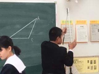 少人数授業でおうぎ形の学習です。重なった大小のおうぎ形を重ねて、重なっていない面積をどうやって求めたらいいのか頭を使って学習しました。あっという間に解き方がわかり上手に説明してくれました。