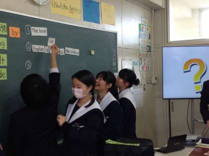 「 少し難しいですよ」と先生に言われて、悪戦苦闘しながら、次の単語を並び替えていました。