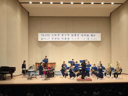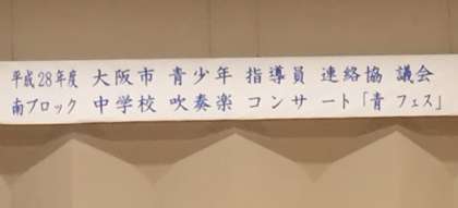 本日、住吉区民センターで行われた青フェスに本校吹奏楽部が出演しました。南ブロックで活動している吹奏楽部12校が集い、お互いの曲を発表し合い、とても良い刺激となりました!