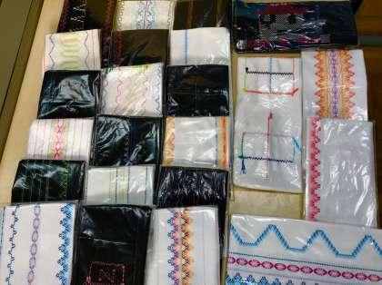 3年生は卒業制作として、スウェーデン刺繍をしました。