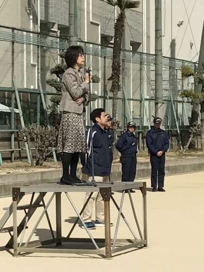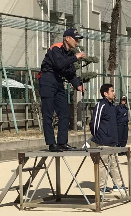 西成消防署の方から、日頃の訓練の積み重ねがとても大切であることをお話しいただきました。普段から意識して注意を払えること、何時もの変化に気づくこと、整列や点呼の大切さを実感しましょうね。