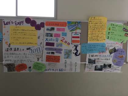 来週から修学旅行で行く場所や活動について、色々調べてこのような素敵なものを作ってくれました。三年生の廊下に貼ってあります。オススメのお土産も気になりますね。ポスター係が放課後に頑張ってくれました。みんなの為にありがとう。