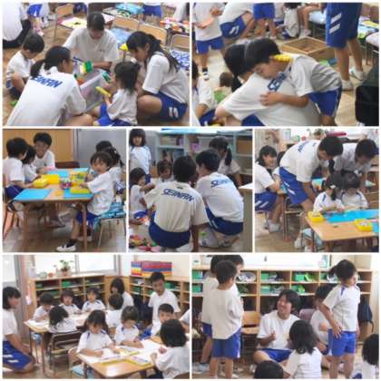 最初の10分はどうなる事やら…と少しドギマギする場面もありましたが、みんな視線を園児に合わせたり、顔を覗き込むことも出来ていましたね。