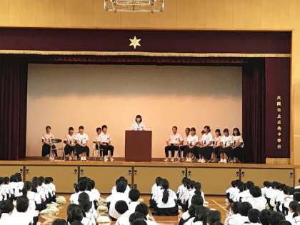 6限全校生徒が体育館に集まって、後期生徒会役員の立会演説会が行われました。