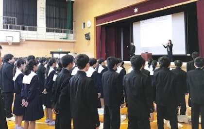 本日の全校集会では、式典で全員で合唱する曲を練習しました。