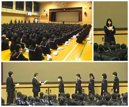 皆さんは4月からこれまで、運動会や文化祭をはじめ、様々な行事で創立70周年をみんなでお祝いするという意識を持って活動してくれました。体育館の校歌レリーフなど、その足跡も残すことができました。そして、地域や保護者の方々にも感動してもらい、たくさんのお褒めの言葉をいただきました。みんなで工夫し合い、力を合わせて頑張った成果です。