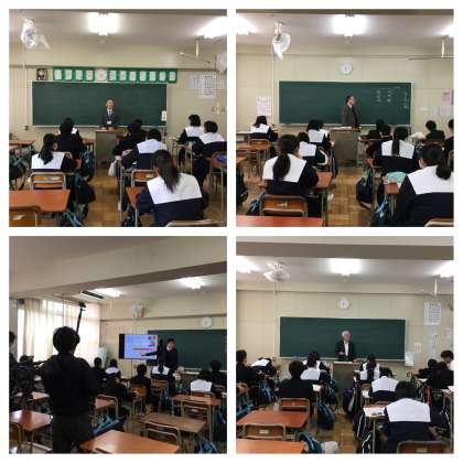 1月31日(水)5,6限 1年生は職業講話を聴きました。看護師、保育士、放送関係、旅行、ホテル、消防士、警察官、建築家の方が、学校に来られ、普段は聴けないような現場の仕事のお話や、また、中学時代はどう過ごせばいいか、というアドバイスまでいただきました。