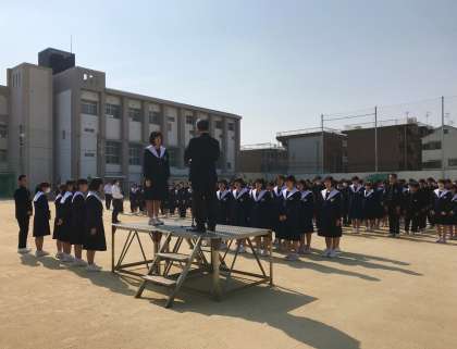 バレーボール部が春季総体でブロック3位となり、表彰状を伝達しました。