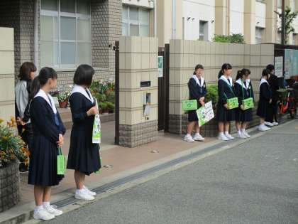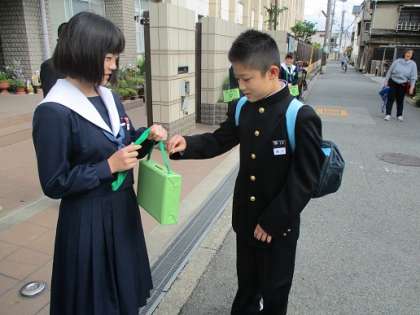 生徒会活動の一環として、緑の羽根募金を行っています。
