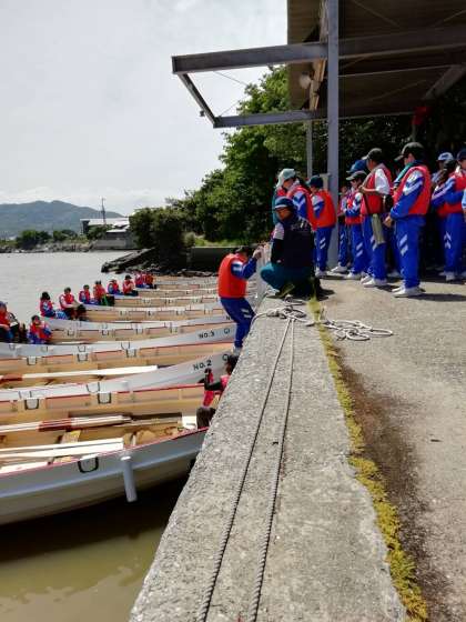 しっかりとレクチャーを受けた後、エンジン艇に牽引され沖へ。