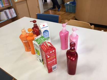 ここではユニバーサルデザインの学習と体験です。シャンプーとリンスの違いについて質問されたら、かなり多くの人が知っていました。
