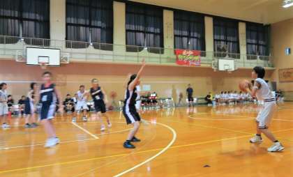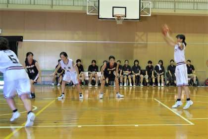 西日本豪雨の影響で延期されていたバスケットボールの府大会が始まり、7月14日に本校で男女とも試合を行いました。女子は私立の関西創価中学と対戦しました。試合開始早々は緊張のせいもあって思い通りに動けなかったものの、徐々に調子を取り戻し、結果、72対25で快勝しました。2回戦は会場を移して15日に行われます。