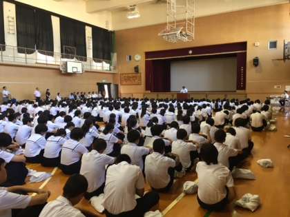 最近続いている猛暑での気温の測り方、サッカーのワールドカップでの日本の戦いからルールについて考えていきました。夏休みを前にして、ルールを守ることの大切さについてお話をしていただきました。具体的な事例をあげながら守るべきことを教えていただきましたので、気を緩めることなく、いい夏休みになるように過ごしていきたいと思います。