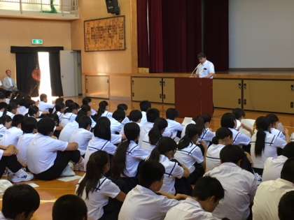 西成警察署生活安全課課長、そして保護司会の皆さんによる非行防止教室を開催しました。