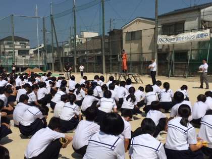 1時間目の非行防止教室に続いて、防災訓練を行いました。今回は、校内で火災が発生したという想定です。