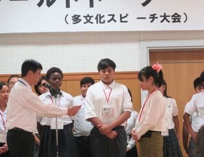 今年は成南中学校から3年生1名が参加しました。去年に続いて2度目の参加となり、自作の原稿をほとんど暗唱できるほどで、手振りを交えて会場の人たちに伝えようとする気持ちのこもった発表をしてくれました。また、司会者の一人として他の人のスピーチを紹介したり、民族楽器の演奏を披露したりと、大活躍でした。わざわざ応援に来てくれた同級の友達もいて、温かさにあふれた大会でした。