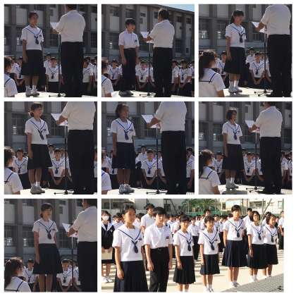 更衣調整期間に入り、気温や各自の体調などに合わせて夏服と冬服を選んで過ごすことになります。冬服を着こなすルールについて再度確認するお話がありました。