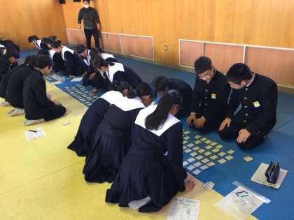平成最後の百人一首大会が始まりました。今日は2回戦を行い、合計点を競います。結果発表は金曜日の学年集会で行います。