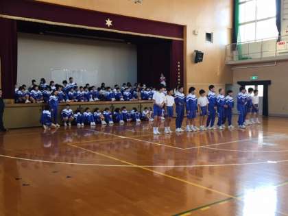 クラス対抗でドッヂボール大会をしています。ゼッケンをつけているのは、最初から外野で出ている人で、各クラス3人ずついます。体育館の中はいわゆる黄色い歓声が飛び交い、熱戦を繰り広げています。ゲームの途中からボールが追加されて2個になります。