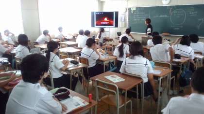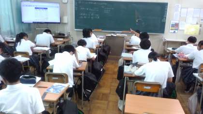 3年生理科と2年生数学の様子です。理科では太陽について学習しています。数学では1次関数の学習をしています。