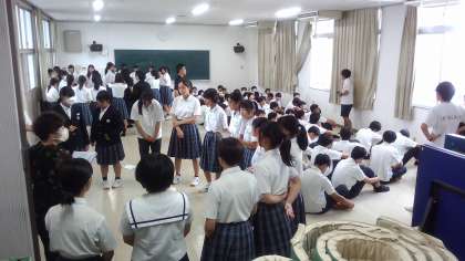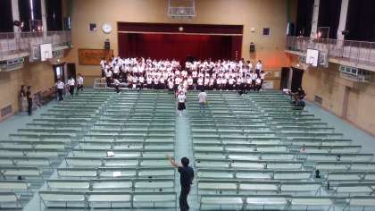 文化祭に向けての各学年の練習や準備が日々熱を帯びてきています。2年生は学年全員が多目的室に集まって練習しています。パート別の練習に先生方の熱心な指導の声が飛び交っています。