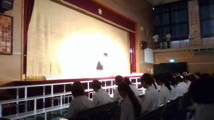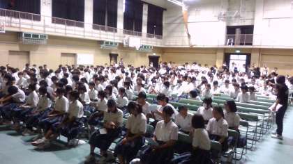 生徒が体育館に入場し、生徒会長のあいさつで開会しました。