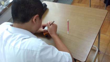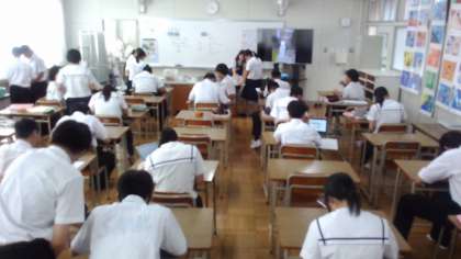 美術の様子です。自分の名前のハンコを作成しています。細く細かく削る繊細な作業に集中して取り組んでいます。出来栄えはいかがでしょうか?
